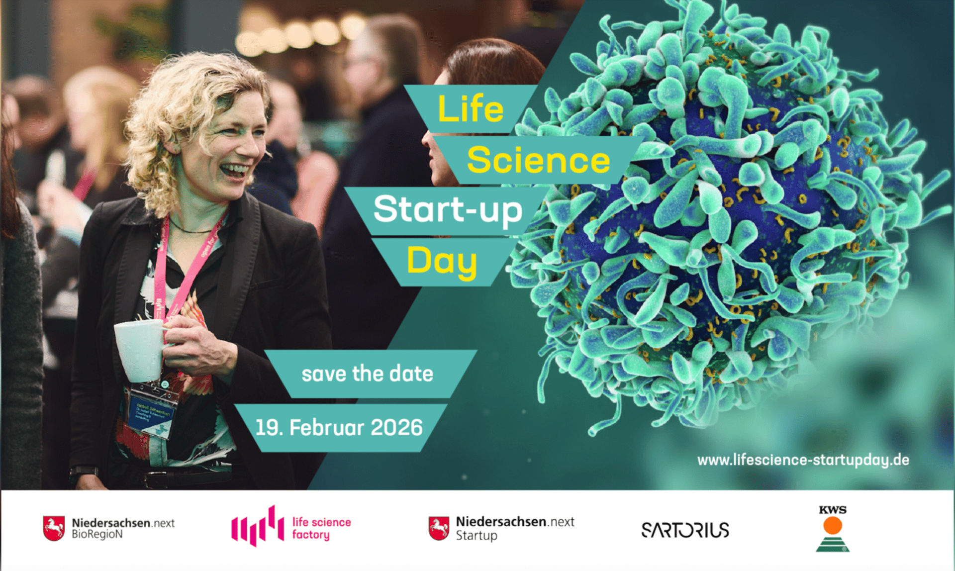 Niedersachsens unverzichtbares Event für Gründerinnen, Gründungsinteressierte, Wissenschaftlerinnen, Investoren und Netzwerkpartner: Am 19. Februar 2026 öffnet der Life Science Start-up Day zum siebten Mal seine Pforten und stellt erneut Unternehmertum, Innovation und Networking im Bereich der Lebenswissenschaften in den Mittelpunkt. Freue Dich auf ein abwechslungsreiches und informatives Programm: Erlebe inspirierende Keynotes von führenden Experten, vertiefende Bühnen-Sessions zu den aktuellsten Themen im Life Science Sektor und spannende Start-up Pitches, die die Zukunft der Branche gestalten. Nutze die Gelegenheit, wertvolle Kontakte zu knüpfen, Dein Netzwerk zu erweitern und Dich auszutauschen.